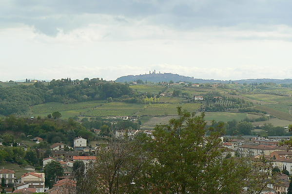 Pasiekiame miestą. Įeiname per vartus ir patenkame į viduramžių miestą, kuriame filmuoti filmai „ Arbata su Musoliniu“, „Stebuklai atsitinka vieną kartą“, „ Klastingasis lapinas Bordžija“. Daug turistų. Dešinėje kankinimų ir mirties muziejus (ech jau tie italai, linksminosi atsakančiai). Parduotuvėlės vilioja nuostabiai spalvingais keramikos dirbiniais (tokio pasirinkimo daugiau niekur nemačiau), natūralia kosmetika, skanumynais. Užeiname į vieną – nuperku pirmą lauktuvę - citrinos formos muiliuką. O jau kvepia - kaip visas citrinmedis. Šafrano neieškome, nors sakoma, kad anksčiau, norintieji išsivežti šio prieskonio iš San Gimignano, prie miesto vartų turėjo susimokėti „eksporto“ mokestį, nustatytą pagal išvežamo prieskonio kiekį. Dabar šafranas auginamas ekologiškuose ūkiuose, nenaudojant jokių cheminių preparatų, sėjamas ir nurenkamas tik rankomis.